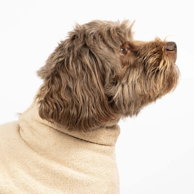 Na een bad, een duik of een wandeling in de regen houdt de Noir Japandi hondenbadjas je hond warm en droog. Het zachte, sterk absorberende katoenmateriaal neemt vocht efficiënt op en helpt de vacht sneller te drogen. De badjas biedt een comfortabele pasvorm met verstelbare klittenbandsluiting, waardoor hij gemakkelijk aan en uit te trekken is. Verkrijgbaar in een stijlvolle beige Japandi look.