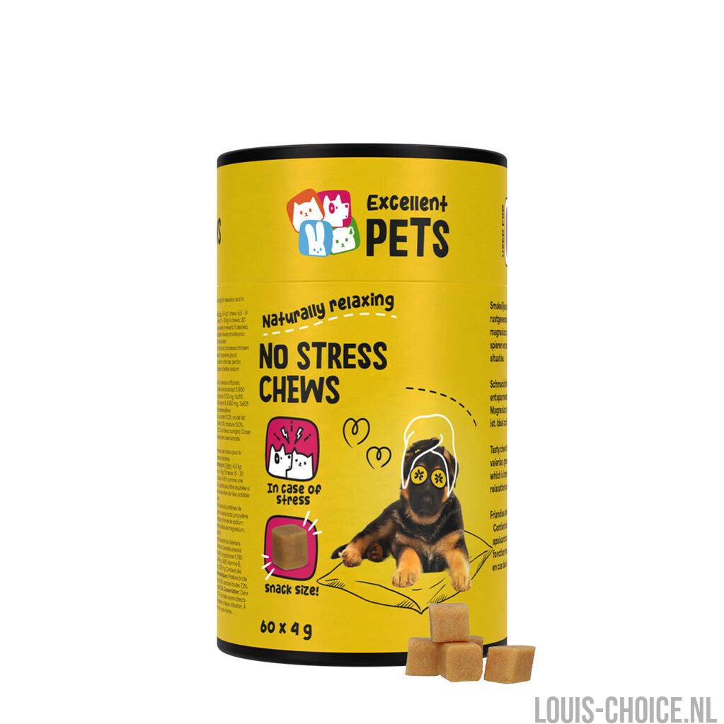 Excellent Pets No Stress Soft Chews is een aanvullend diervoeder voor honden in de vorm van zachte kauwsnoepjes. Het bevat natuurlijke, rustgevende ingrediënten, ter ontspanning en bij stresssituaties en is tot 5 uur lang effectief.