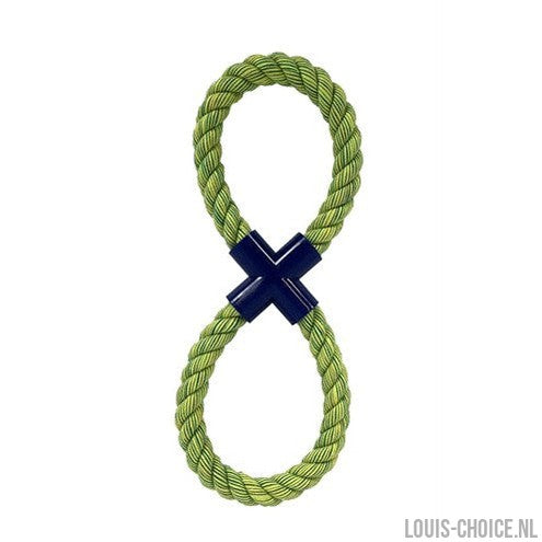 De 8 vormige Flossin Fun is leuk hondenspeelgoed wat op veel verschillende manier gebruikt kan worden. Het speeltje kan gebruikt worden om mee te apporteren, om lekker op te kauwen en in het bijzonder ideaal voor duw- en trekspelletjes. Het touw bezorgt jouw hond urenlang speelplezier. Tijdens het kauwen zal het touw ook het gebit van je hond verzorgen. Het speelgoed is gemaakt van duurzaam katoen touw en is in verschillende kleuren verkrijgbaar, maar welke kleur je krijgt blijft een verrassing.