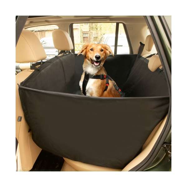 Een opening voor de veiligheidsgordel maakt het gemakkelijk om zowel uzelf als uw hond vast te zetten. Het duurzame nylon materiaal van de hoes is waterafstotend en wasbaar.