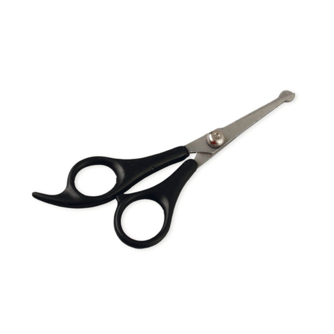 Deze roestvrijstalen trimschaar met plastic handvatten is ideaal voor het uitdunnen en stylen van haar op oren, neus en poten.