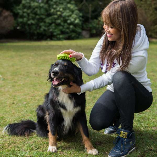 Dankzij de borstel van stevig maar flexibel siliconen, krijgt je hond ook een aangename massage tijdens het borstelen.