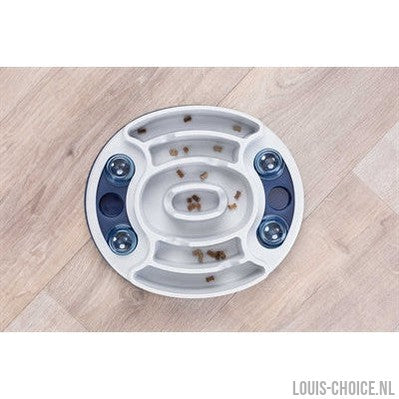 Het Trixie Dog Activity Slide & Feed 30 x 27 cm intelligentiespel voor de hond daagt het dier uit te zoeken naar zijn beloning of dagelijks voer en gaat zo verveling tegen. Dit leuke spel is gemaakt van kunststof en nodigt het dier uit zijn poot of snuit te gebruiken om bij zijn beloning te komen. Je kunt het spel gebruiken om de hond naar zijn beloning te laten zoeken, maar ook gewoon voor zijn dagelijkse eten. Zo voorkom je schrokken én verveling! Het spel is slipvast door de rubberen ring en wordt geleverd met een handleiding met tips voor een optimale training.