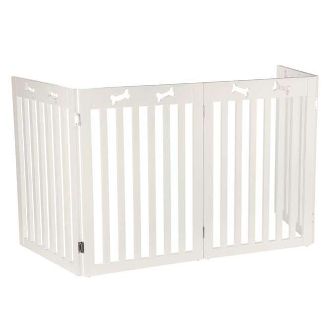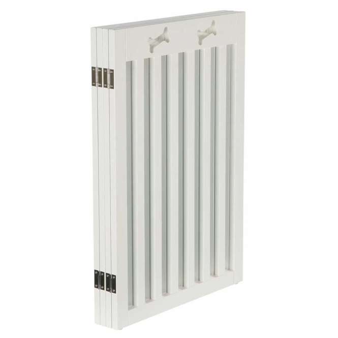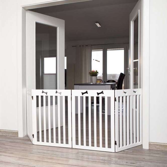 Dit hoogwaardige hondenhek is gemaakt van gelakt MDF en maakt het mogelijk om kamers, trappen enz. af te zetten, zelfs voor grote honden.