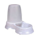 De kunststof voedsel- en waterdispenser bestaat uit een basis en een bovenbak met twee verschillende openingen voor water en voedsel. Antislip dankzij rubberen voetjes. De dispenser is geschikt voor katten en honden.