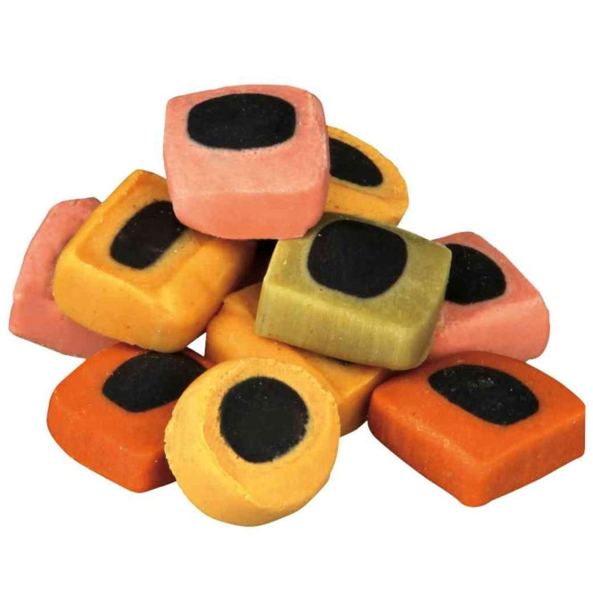 Lustige beloningssnacks met kip. Zonder toegevoegde suiker en handig verpakt in een hersluitbare plastic emmer.