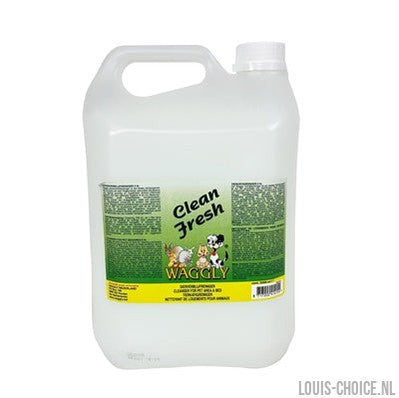 Waggly Clean Fresh 5 ltr dierenverblijfreiniger is het ideale reinigingsmiddel op basis van fris geurende natuurlijke eucalyptus olie. Het is natuurlijk erg belangrijk om het verblijf van jouw dier, zoals bijvoorveeld hondenhokken, kennels, kooien van knaagdieren, maar ook kattenbakken, goed schoon te houden. Waggly Clean Fresh reinigt grondig en neutraliseert urinelucht en andere niet gewenste geuren.